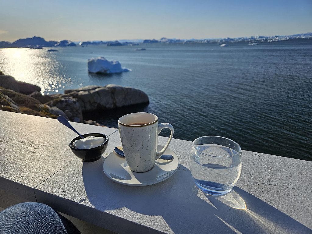 Und weil wir uns den letzten Abend durch nichts und niemanden vermiesen lassen wollten, holten wir uns einen Gin & Tonic beziehungsweise einen Kakao und schauten Eisberge an.