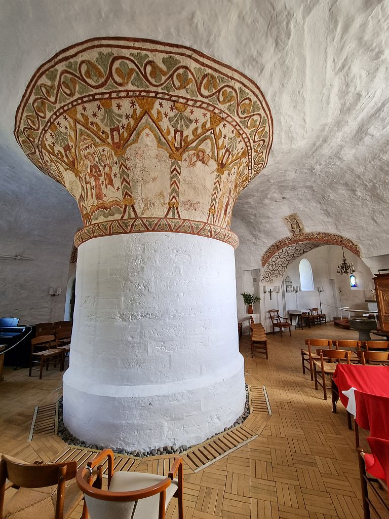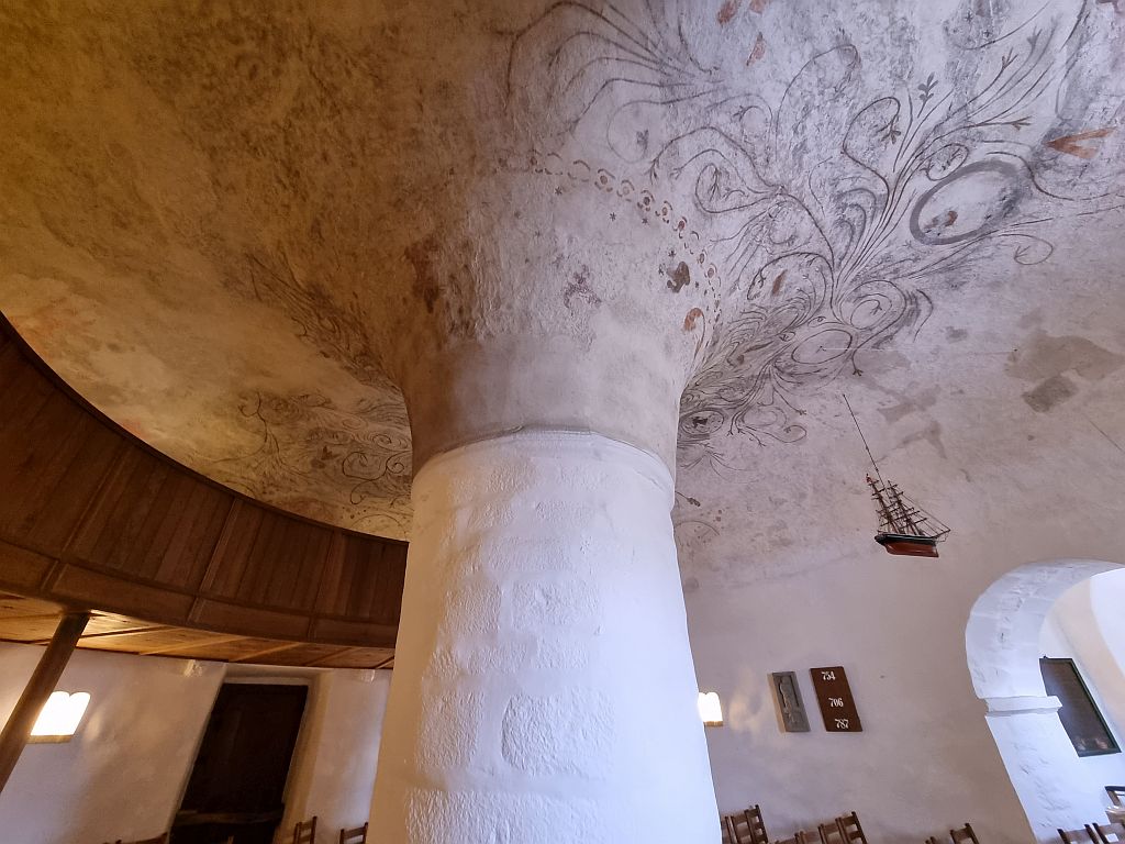 Innen merkte man gleich, dass dies hier die größte der vier Kirchen ist, denn der Mittelpfeiler war größer und ebenfalls mit leicht verblichenen Fresken verziert.