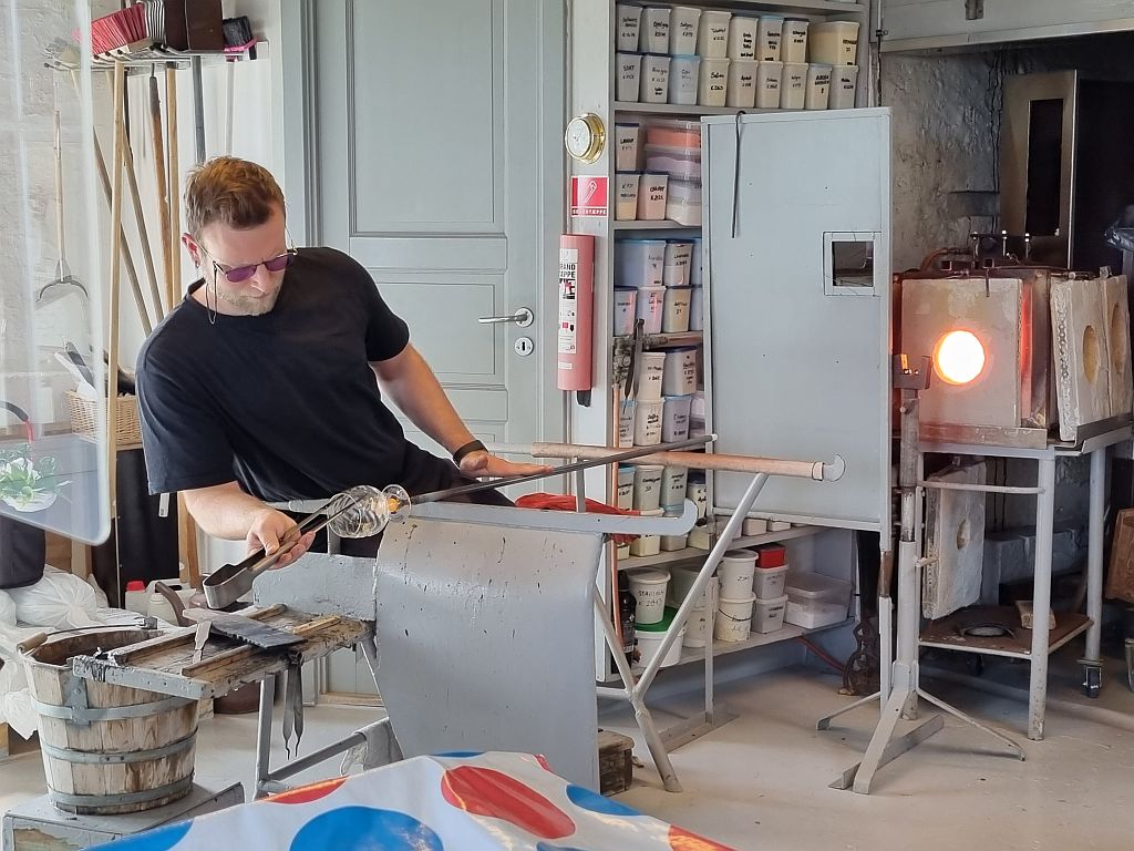 Frau Hisen ist eine Glasbläserin und man konnte ihr hier bei der Arbeit zuschauen.