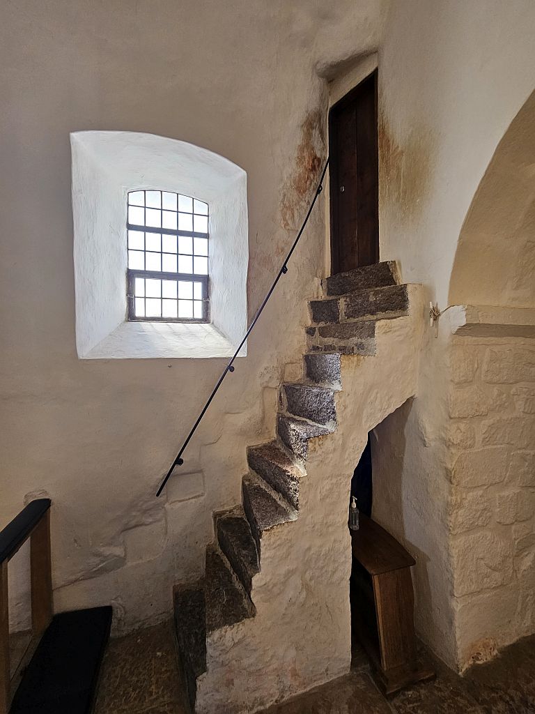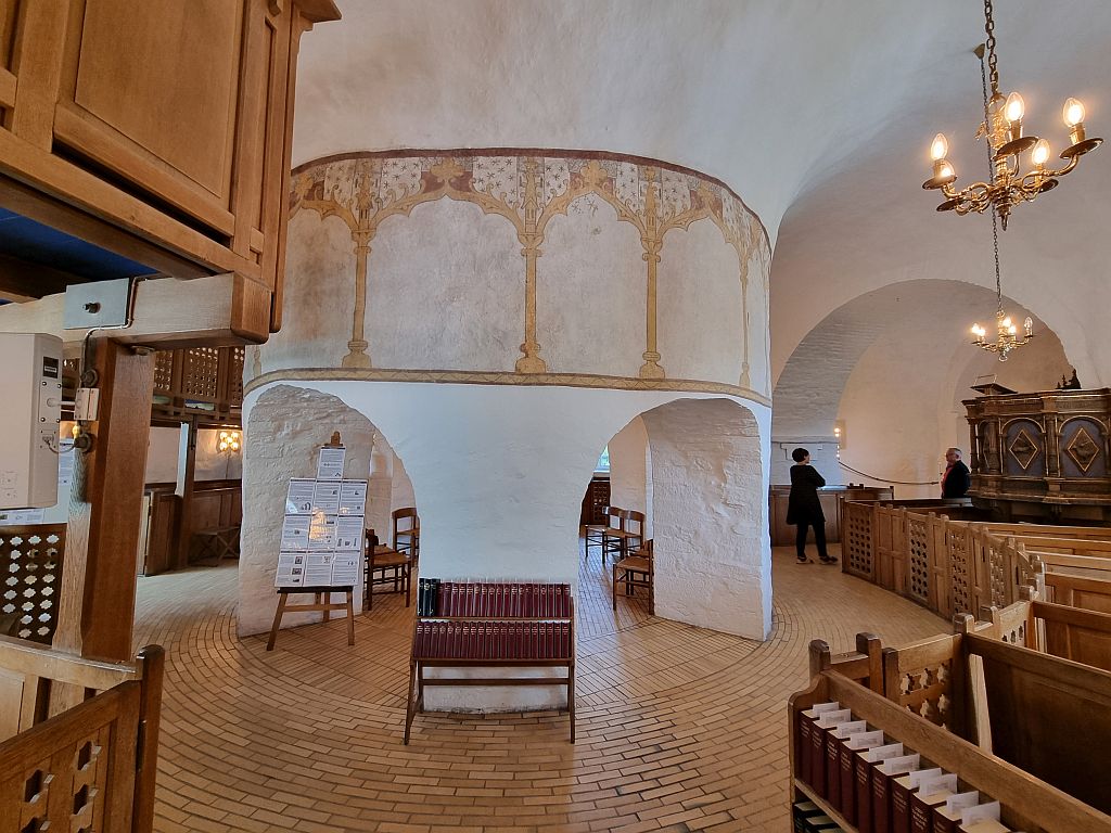 Diese Rundkirche wurde zwischen 1150 und 1250 erbaut, mehrfach angepasst und erweitert. Und mit zwei Stockwerken ist es die kleinste auf Bornholm.