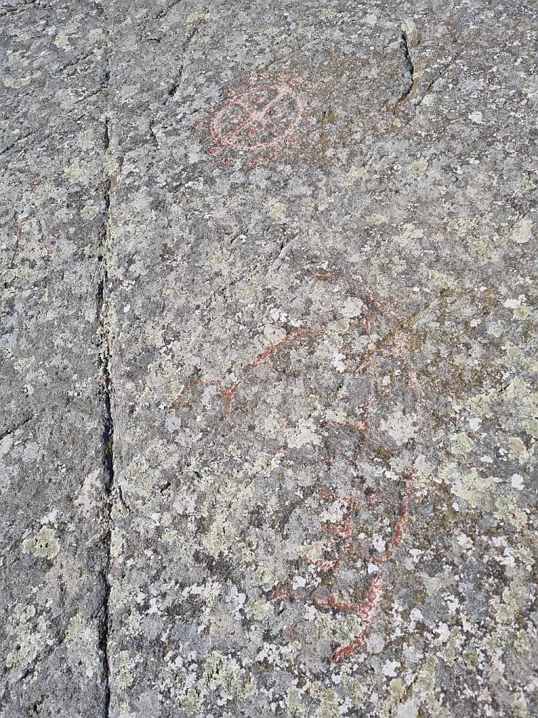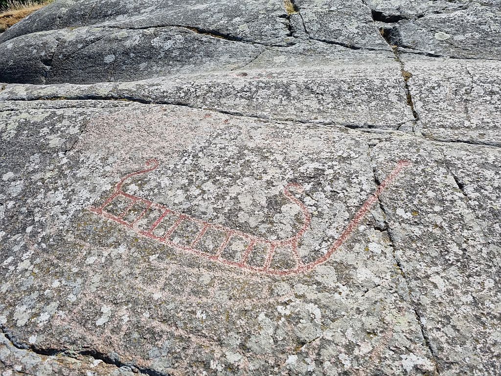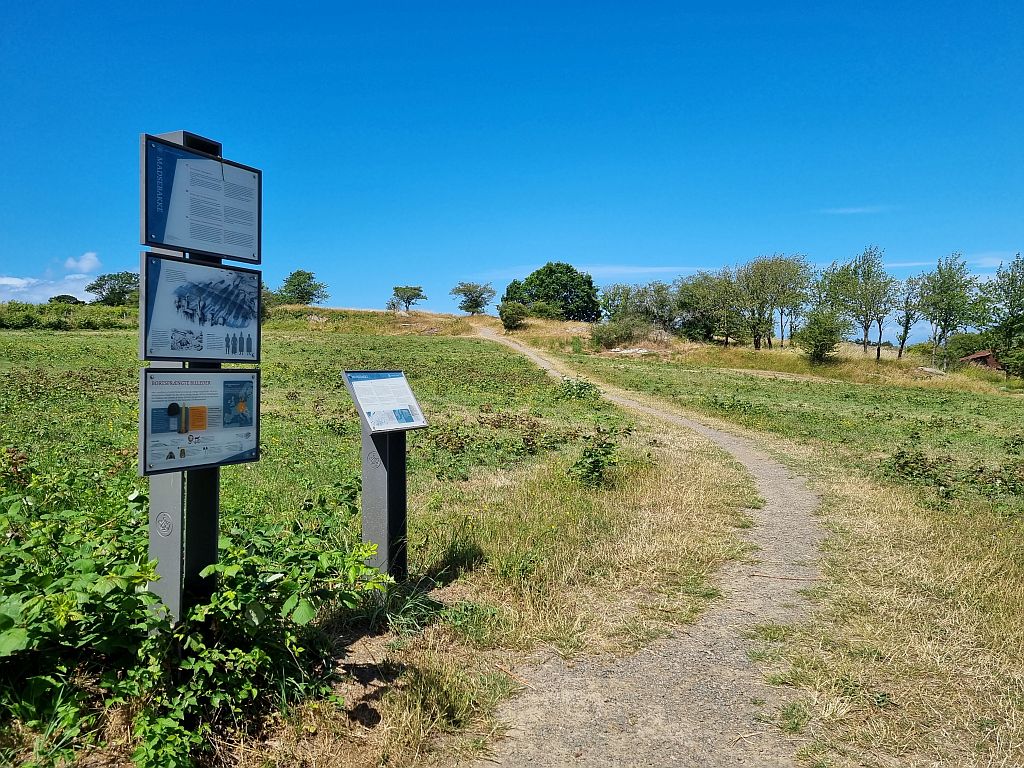 Als nächsten Halt hat Meike den Ort „Madsebakke“ ausgewählt. Hier wurden im letzten Jahrhundert Steinzeichnungen aus der Bronzezeit, also von vor 4.000 Jahren, entdeckt. Diese zeigen vor allem relogiöse Symbole wie ein Schiff. Was erst durch die paar Erklär-Tafeln verständlicher wurde, denn damals glaubte man, dass die Sonne auf einem Schiff am Horizont entlang fuhr und so huldigte man dem Sonnenschiff.