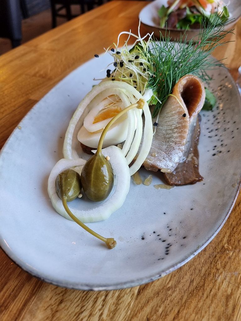 Ach so, das gestern in der Räucherei erhaltene Gericht „Sol over Gudhjem“, was aus Bückling, rohem Eigelb, Schnittlauch und Radieschen besteht, bedeutet übersetzt „Sonne über Gudhjem“ und ist hier entstanden. Wir wir darauf kamen? Keine Ahnung …