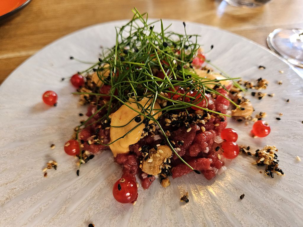 Spannend, weil wir ja sowas ähnliches auch ab und an selber machen. Die Beeren gaben einen schönen Säure-Kick, aber das Tartar war recht neutral im Geschmack.