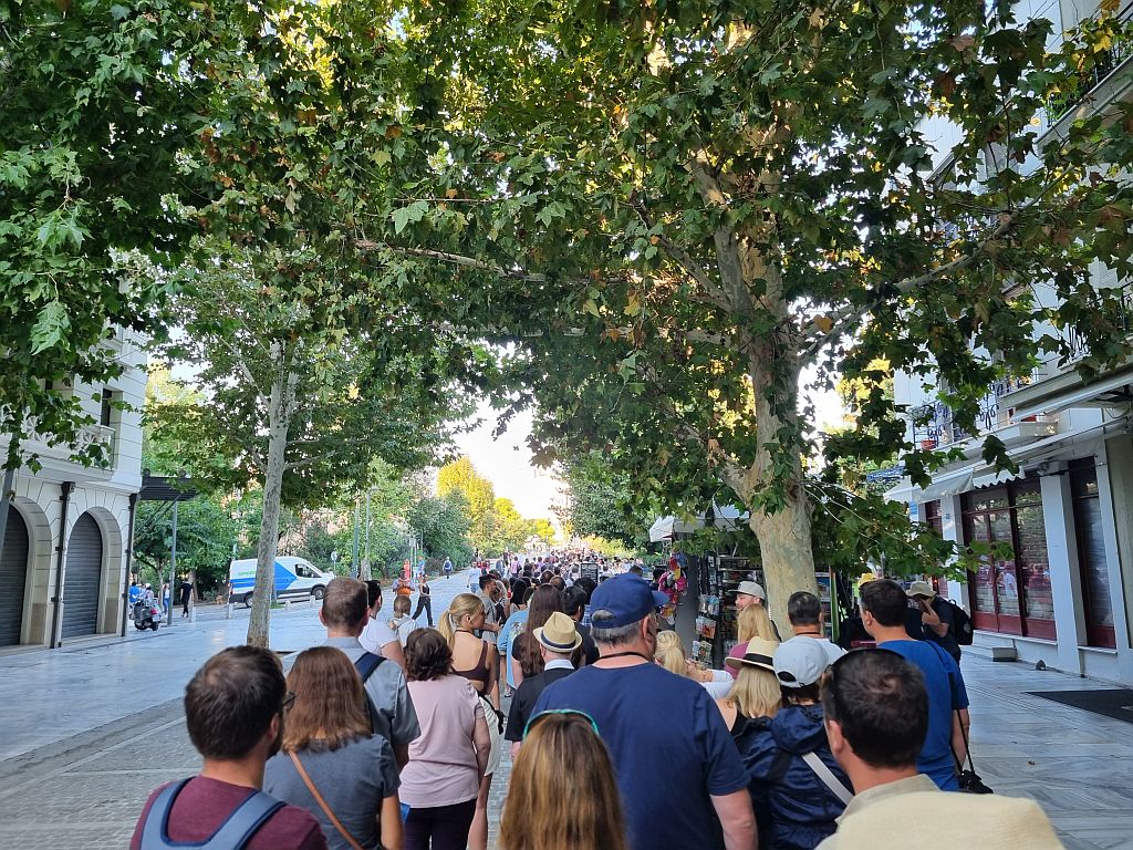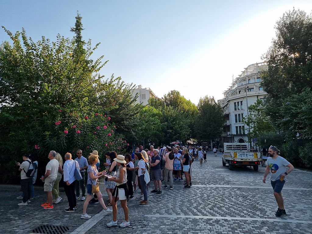 Schwierig wurde die Lage, als eine komplette Jahrgangsstufe einer Schule auf dem Weg zum Museum durch die Schlange gehen wollte. Griechische Schüler sind übrigens genau wie ihre deutschen Pendants an solchen Ausflügen eher nicht interessiert und höre lieber Musik, gackern herum und haben einen Fußball dabei. Hat sich nicht viel geändert, seit eine Abschlussfahrt aus Gummersbach vor der historisch wertvollen Stadt von Siena gegen die Stadtmauern gebolzt hat …