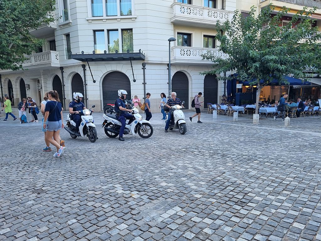 Die Polizei kam auch vorbei und sprach illegal durch die eigentlich gesperrte Straße fahrende Rollerfahrer an. Was allerdings diverse Autos und Transporter nicht davon abhielt neben den Pollern im Hintergrund vorbei über den Bürgersteig zu fahren.