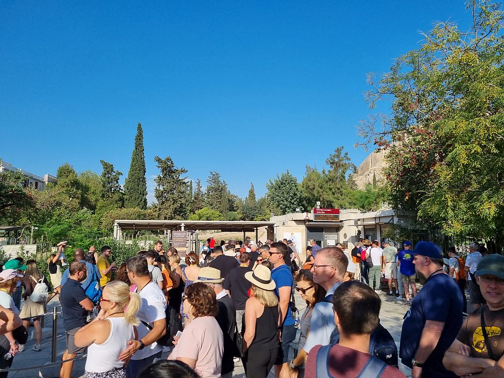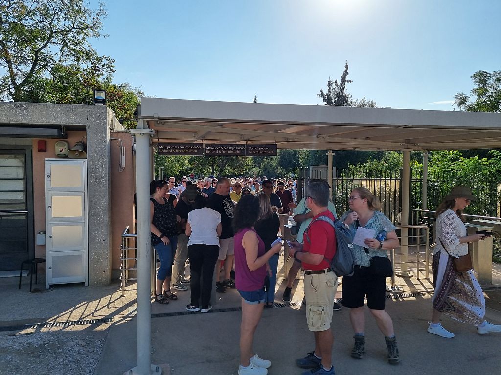 Die Schlange entstand deswegen, so erfuhren wir von den Tourguides um uns herum, weil das neue System mit den Zeitslots nicht so gut funktionierte. Die Tickets haben nämlich einen QR-Code, auf dem die Einlasszeit kodiert wurde. Und die QR Scanner am Eingang waren defekt.