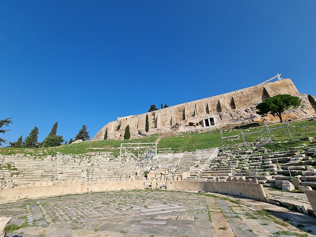 Das Dionysostheater war das wichtigste Theater im antiken Griechenland und gilt als die Geburtsstätte des Theaters und des Dramas. Im 5. Jahrhundert vor Christus bestand es nur aus der Bühne, die Zuschauer mussten auf dem Hügel sitzen. Erst im 3. Jahrhundert vor Christus wurden 78 Sitzreihen gebaut, die Platz für insgesamt 17.000 Zuschauer boten.