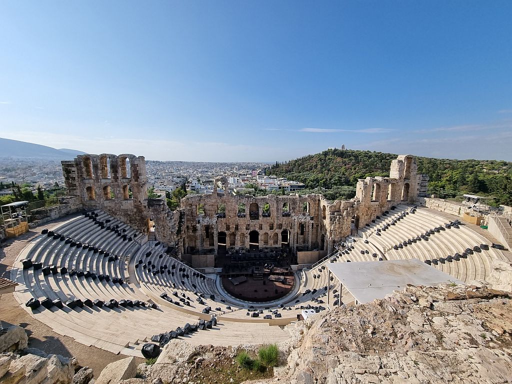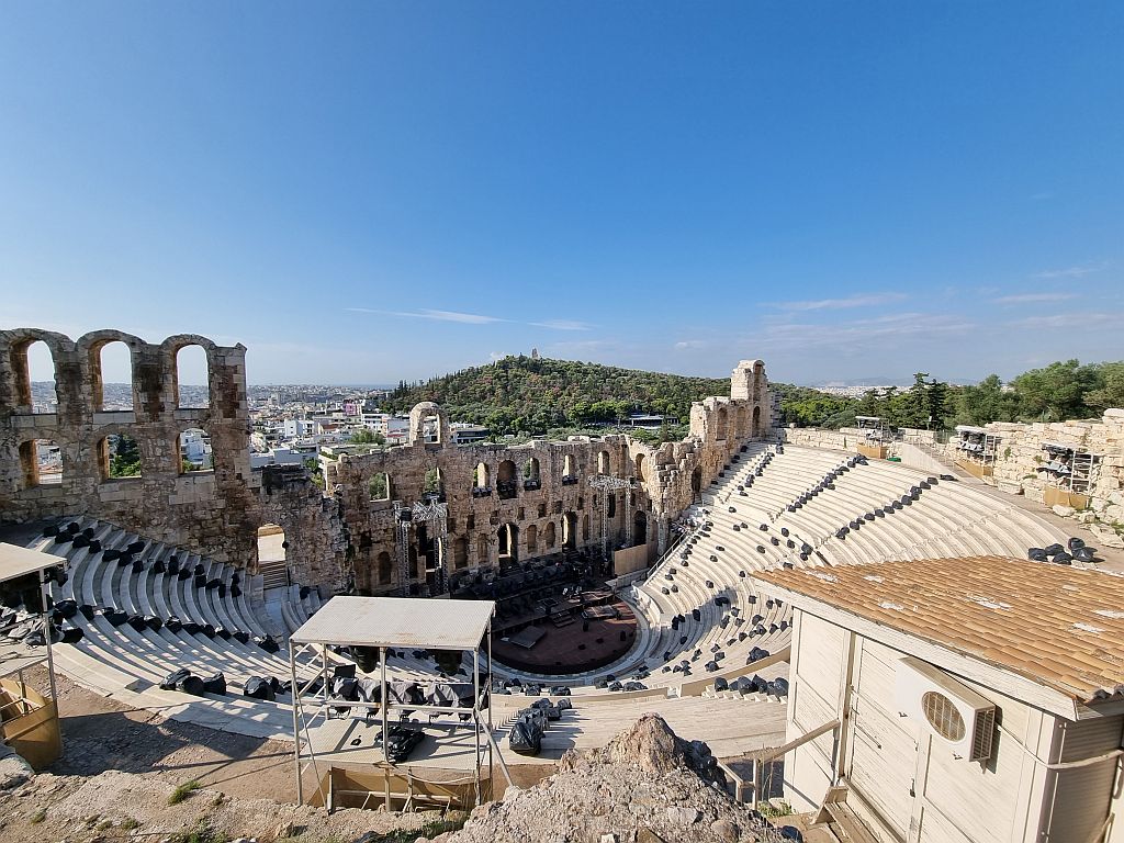Sah aber sehr klein aus, im Gegensatz zum Odeon des Herodes Atticus, einem im römischen Stil erbauten Theater, was knappen 5.000 Zuschauern Platz bot. Das Odeon ist auch heute noch in Gebrauch und wird für Veranstaltungen wie Konzerte genutzt.