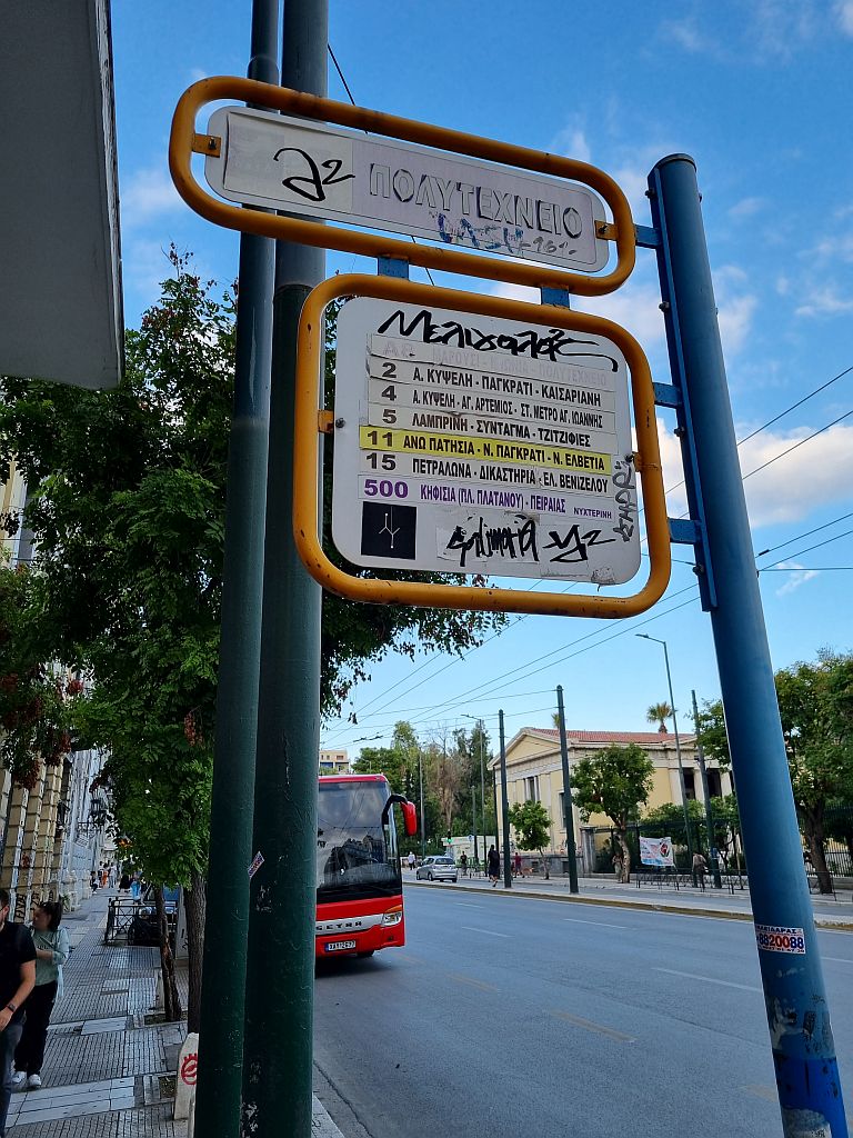 Für den ersten richtigen Abend in Athen hatten wir für uns auch gleich das beste Abendessen geplant. Dazu mussten wir allerdings unsere ersten Gehversuche mit dem Busverkehr in Athen sammeln, denn die Metro hätte mehrfaches Umsteigen bedeutet.