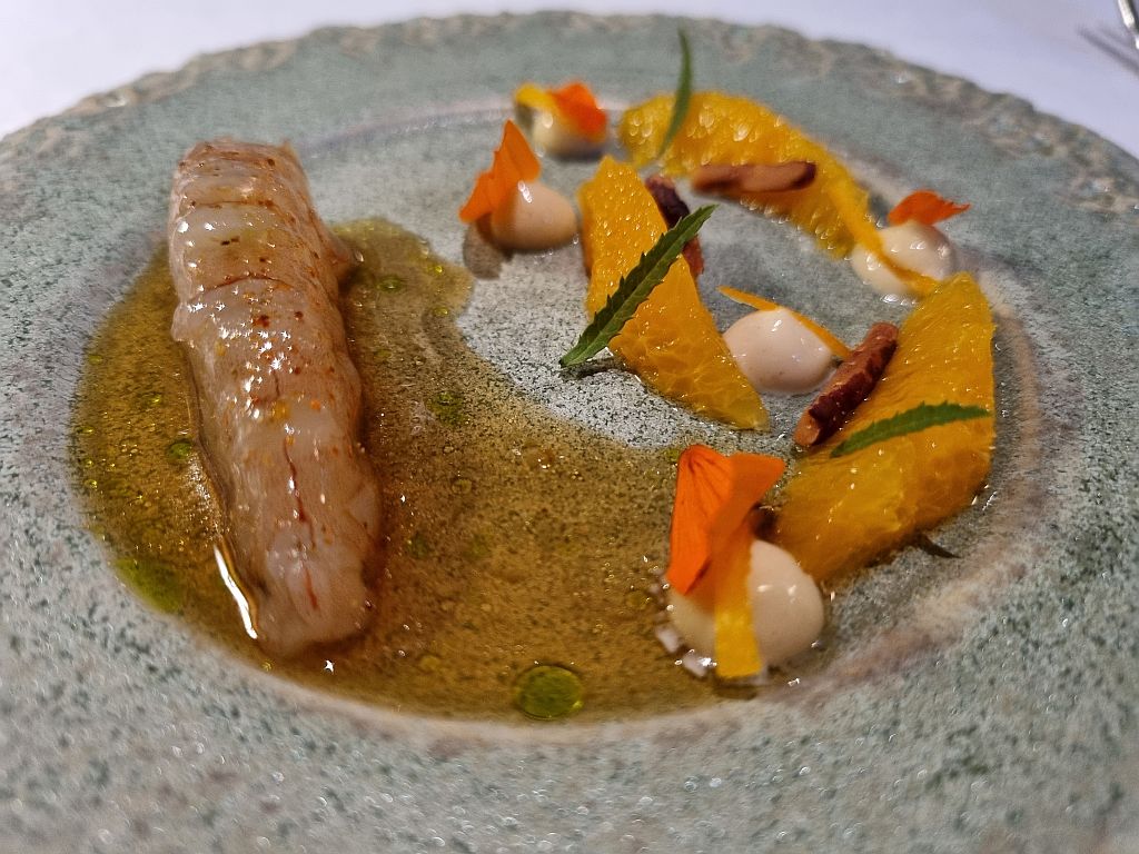 Darunter befanden sich die beiden super buttrigen Schrimps, die sich zu Orange, Pekannuss und einem süßen Öl gesellten.