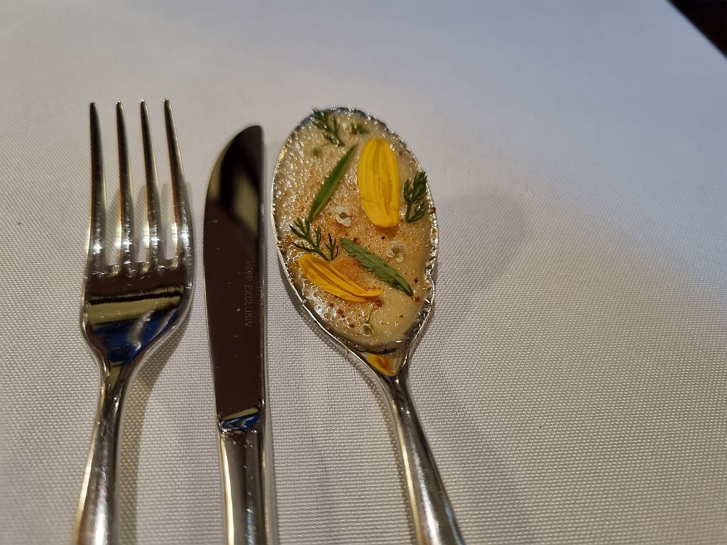 Ach so, als Beilage gab es im Löffel noch ein Schaum dazu, quasi als Ergänzung des Gerichtes.