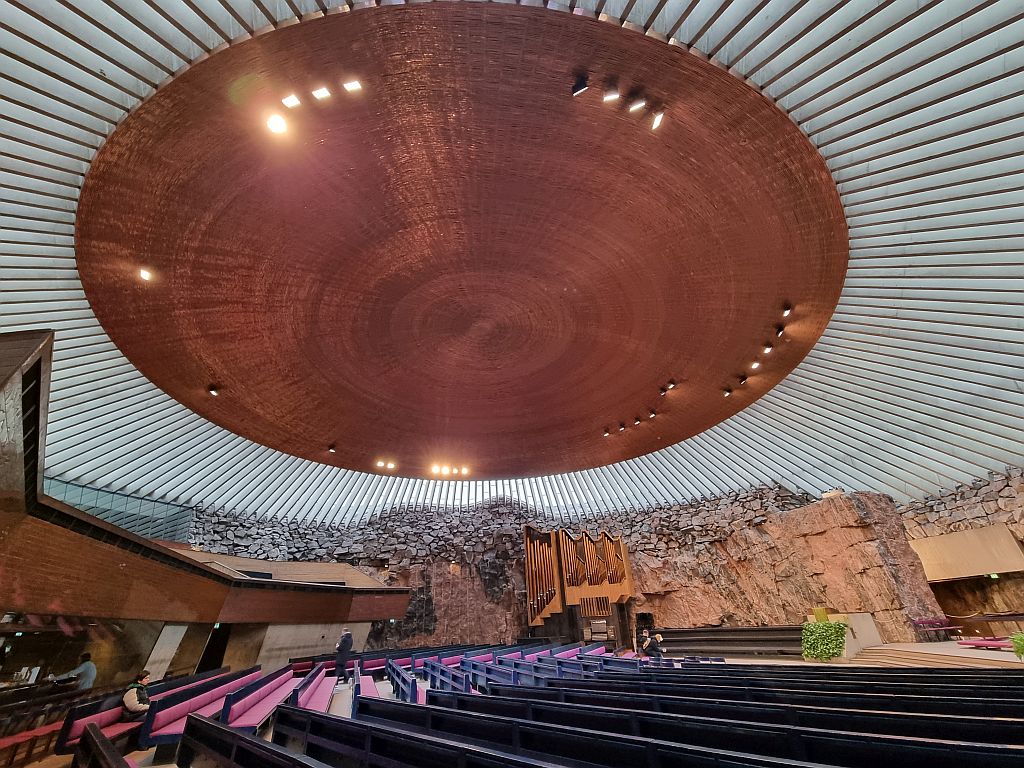 Diese lutheranerische Kirche im Töölö (Finnisch klingt super!) wurde 1969 von einem Zwillingspaar Architekten in Fels geschlagen und gilt auch als „Rock Church“ oder „Church of Rock“. Überraschenderweise kostete es Eintritt, was für eine Kirche eher ungewöhnlich ist. Aber den Eintritt war es wert!