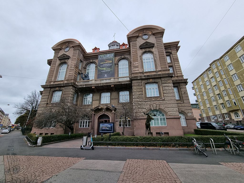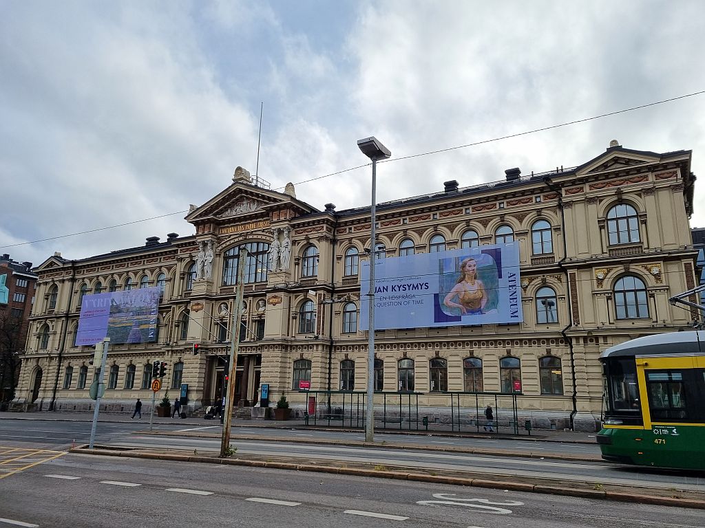 Schräg gegenüber vom Bahnhof das Ateneum Kunstmuseum, eines von drei Museen, die zum Nationalmuseum gehören. 1887 von Theodor Höijer gebaut ist es eines der wenigen Gebäude in Helsinki, das mit Ornamenten geschmückt ist – der klassische Finne mag es eher schlicht.