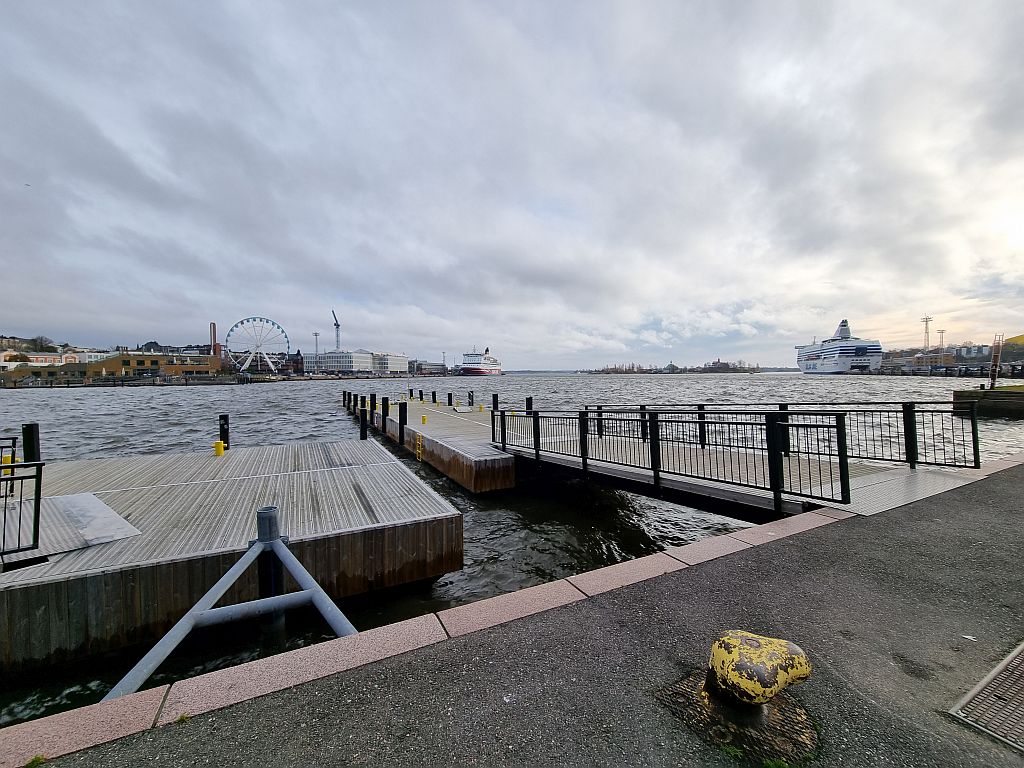 Am Hafenbecken entlang ging dann unsere Tour weiter. Helsinki hat natürlich den wichtigsten Hafen Finnlands und die im Hintergrund liegende Fähre der Silja Lines ist beispielhaft für den Fährverkehr zwischen den Städten Helsinki und Tallinn.