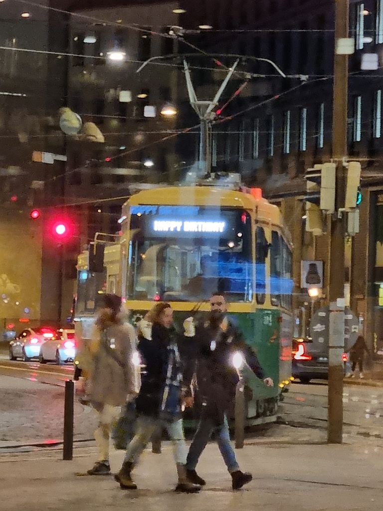 Nicht ohne vorher sich über die „Happy Birthday“ wünschende Tram zu wundern.