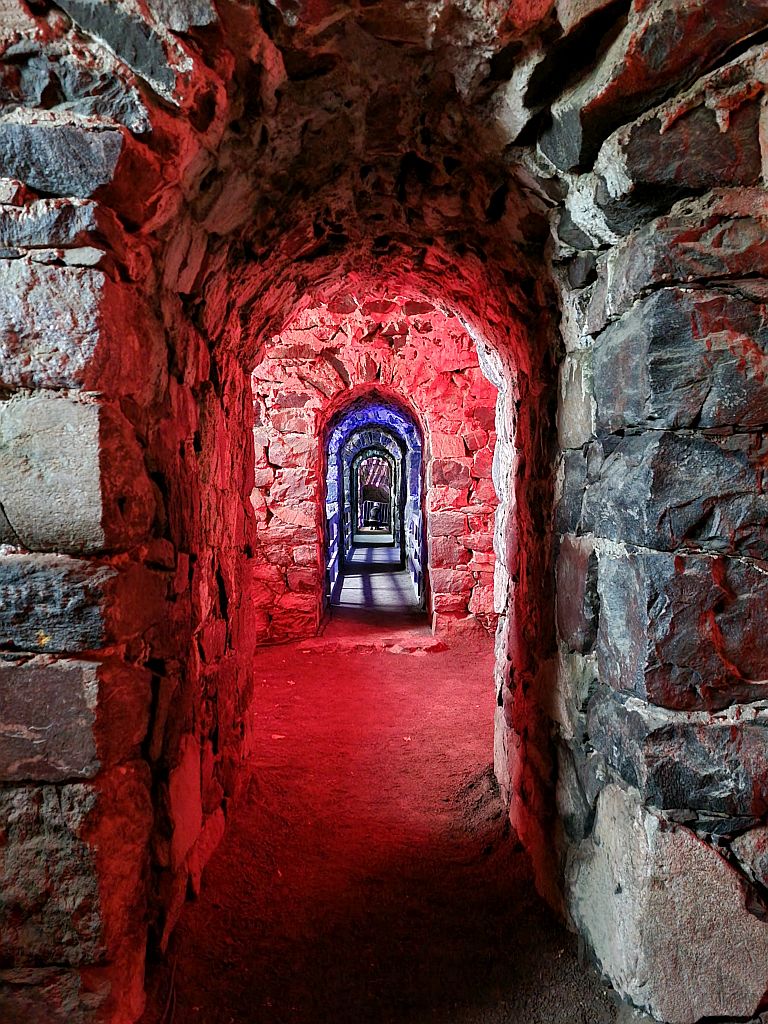 Wir schlenderten von hier nach da und erblickten dann einen schön erleuchteten Tunnel in einer Festungsmauer.