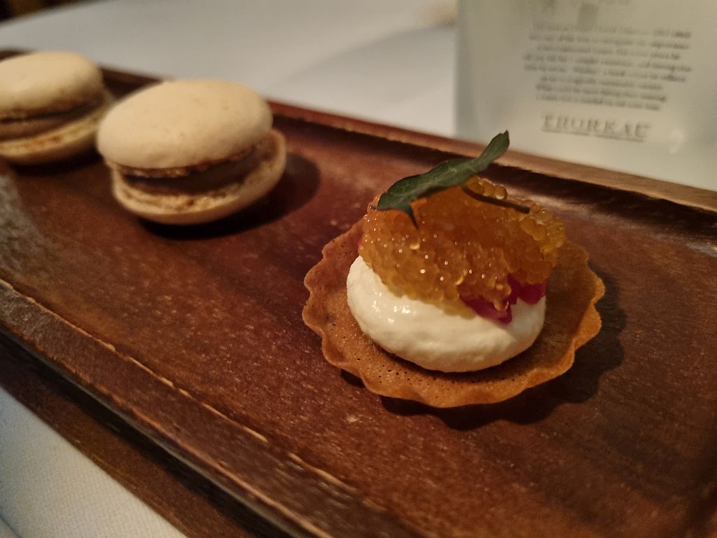 Der Kaviar war … halt da. Dafür war der Rest nicht weniger als grandios! Echt hohe Kochkunst, einfach lecker, nicht zu verkopft und dazu auch sehr spannende Weinauswahl. Die Sommelier hat uns bei jedem Gang ihre Idee zu dem Pairing erklärt und teilweise sogar die Glaswahl (kleines Glas bei einem Chardonnay, Rotweinglas bei einem Riesling von Bürklin-Wolf am Anfang) begründet.
