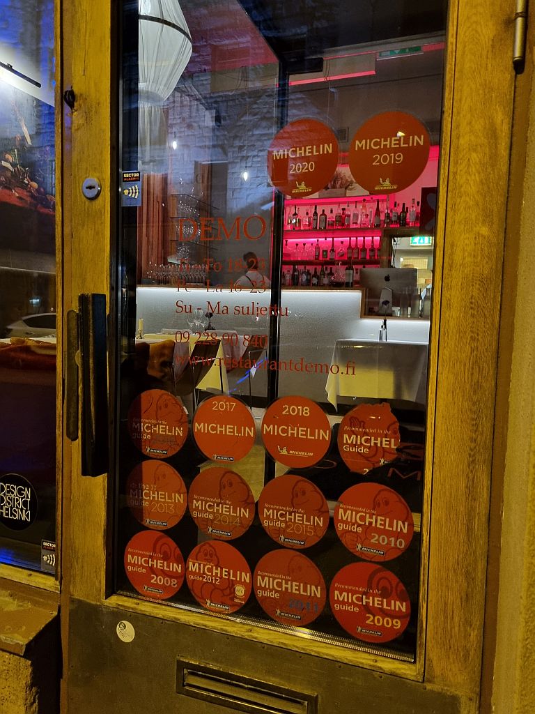 Für Helsinki hatten wir uns, genau wie für Oslo und Bergen im weiteren Verlauf des Urlaubs, ein paar kulinarische Adressen rausgesucht und vorab gebucht. In Helsinki waren dies das am Anreisetag besuchte Gaijin und unser heutiges Restaurant: Das seit 2007 mit einem Stern bewertete Restaurant Demo.