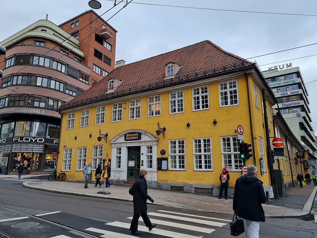 Daneben eines der ältesten Häuser Oslos, das Stortorvets Gjæstgiveri. Erbaut 1903 ist es heute ein Baudenkmal und beherbergt ein günstiges (für norwegische Verhältnisse) Restaurant. Und im Keller einen Strip-Club.