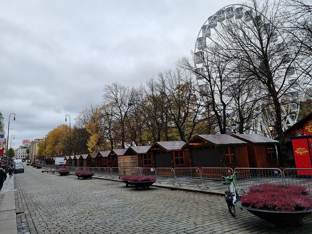 Der neben der Straße liegende Park wurde gerade zum Weihnachtsmarkt umgebaut, daher spazierten wir einfach die Straße entlang.
