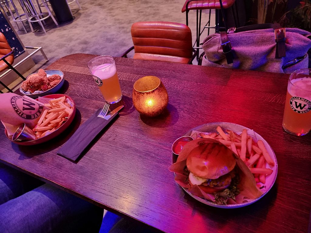 Im Laden selber war nicht viel los, nur 1, 2 weitere Tische waren belegt. Also bestellten wir ein Bier und einen Burger und ruhten uns ein wenig aus.