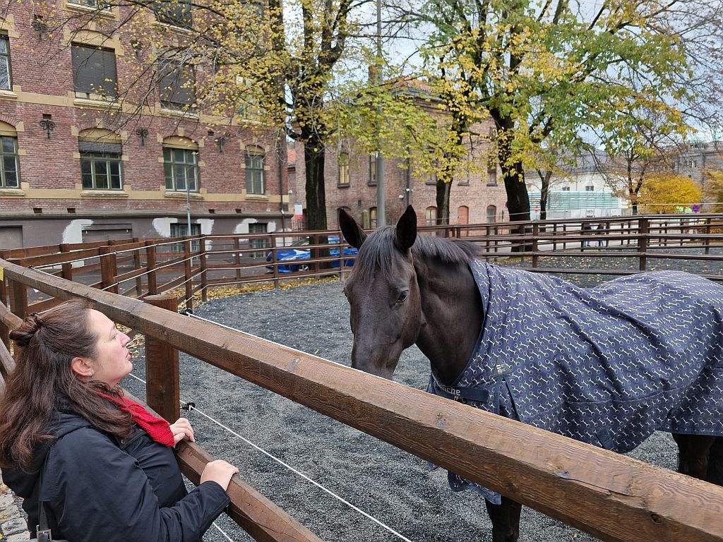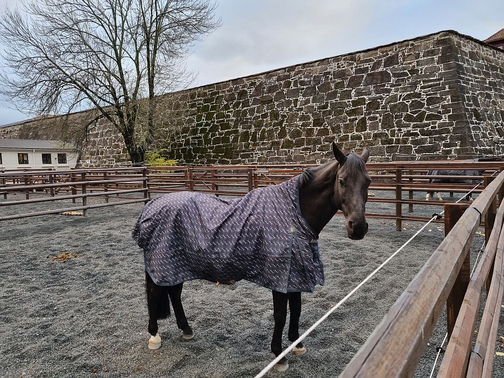 Langsam beschlossen wir dann den Rückweg zum Hotel, denn trotz der wiedererlangten dicken Kleidung wurde es langsam etwas frisch. Was auch die Pferde fanden, die neben einem militärischen Gebäude standen und sich langweilten.