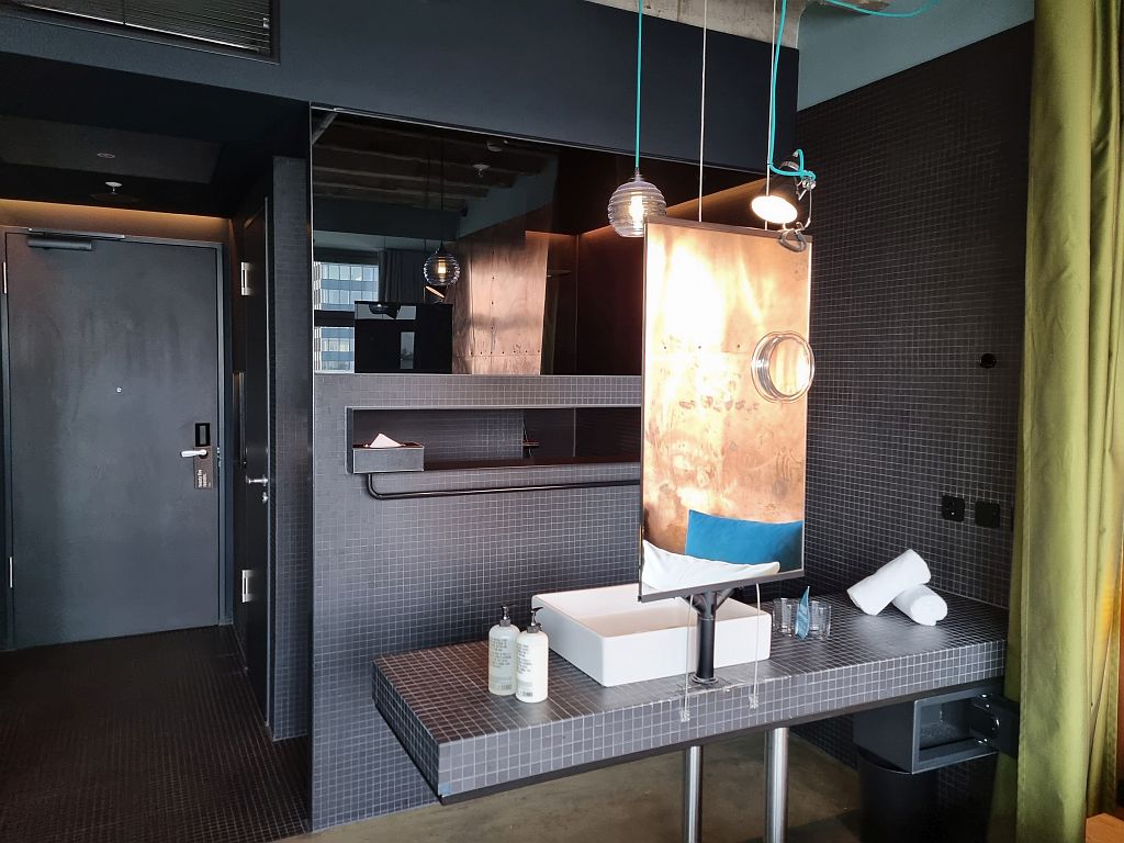 Das Hotel ist ein hippes, neues Hotelkonzept, was ebenfalls zur Accor-Gruppe gehört und wir somit auch ein paar Punkte einlösen konnten, um den stolzen Preis etwas zu drücken. Der CheckIn dauerte eine ganze Weile, weil man bewusst persönlich und hip sein wollte. Wobei wir auch etwas grummelig waren und Jens vor allem auf Klo musste – insofern waren die beiden Angestellten wohl auch einfach nur freundlich. Aber 2 für die lange Schlange an Gästen war zu wenig.