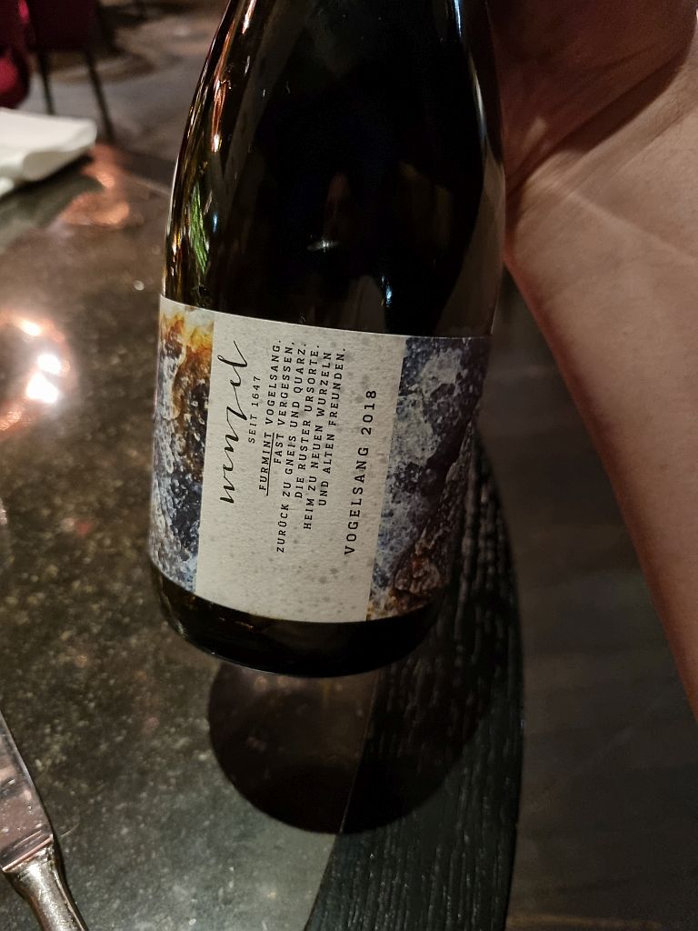 Was übrigens auch eine Überraschung war: Die Weinkarte! Sehr gut sortiert für das Preisniveau. Ein paar „Naturweine“ waren auch dabei und einen davon haben wir uns auch andrehen lassen. Was gut war, denn er passte sehr gut zu den eher fischigen und Gemüse-lastigen Gängen.
