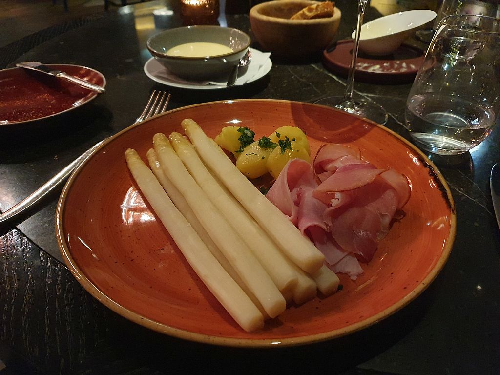 Meike zog das Thema „Spargel“ voll durch und gönnte sich Beelitzer Spargel mit Schinken.