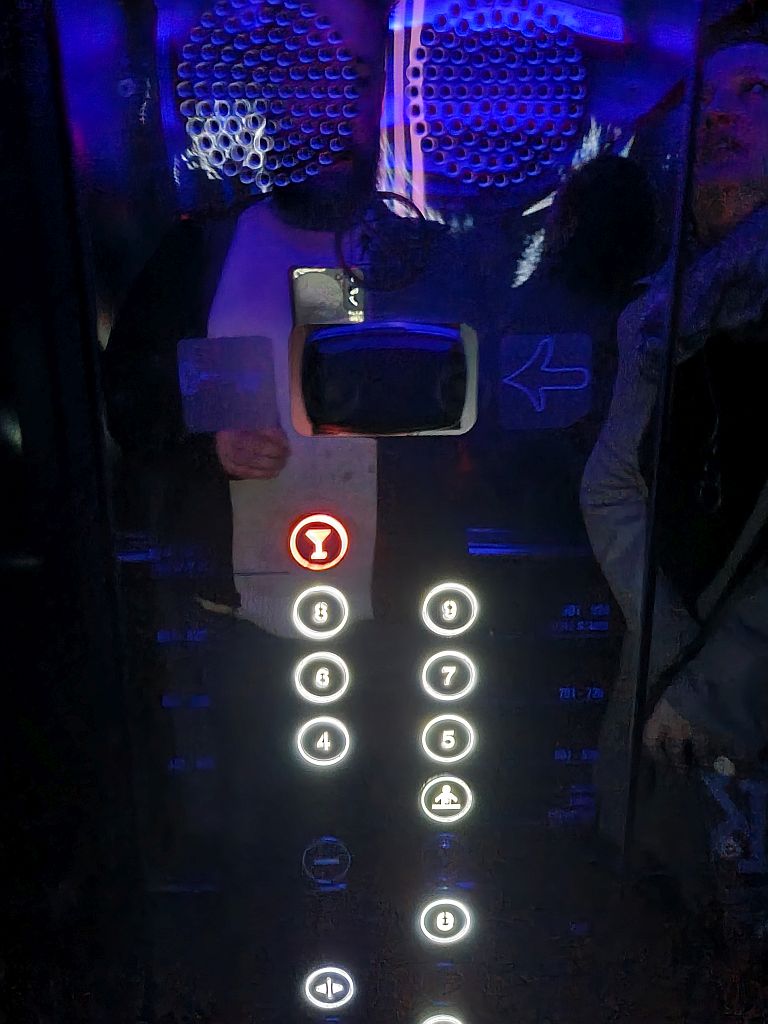 Zurück im Hotel sahen wir dann noch, dass ja im obersten Stock eine Bar ist. Zumindest fragte uns der Türsteher vor dem Hotel, ob wir in die Bar wollen. Zuerst sagten wir „nein, ins Hotel“, wo er meinte, dass, wenn wir wollen, wir von unserer Hoteletage auch direkt hoch fahren können.