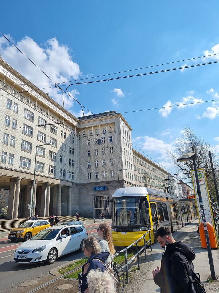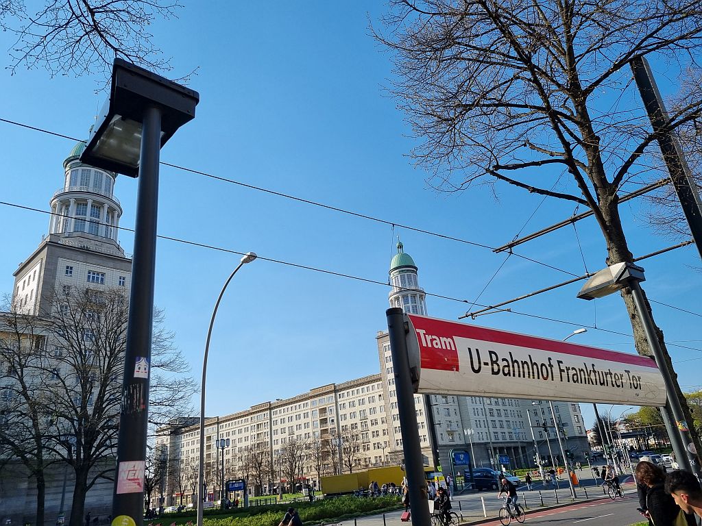 Ab zum Frankfurter Tor, einer Kreuzung zwischen der Frankfurter Allee beziehungsweise der Karl-Marx-Allee mit der Warschauer Straße. Mit seinen 1953 erbauten Gebäude im Stil der Schinkelschule, einer gerade im Ostteil von Berlin verbreiteten Bauweise. Für uns erinnerte das alles eher an Ostblock und Monumentalbauten, aber vielleicht haben wir auch keine Ahnung.