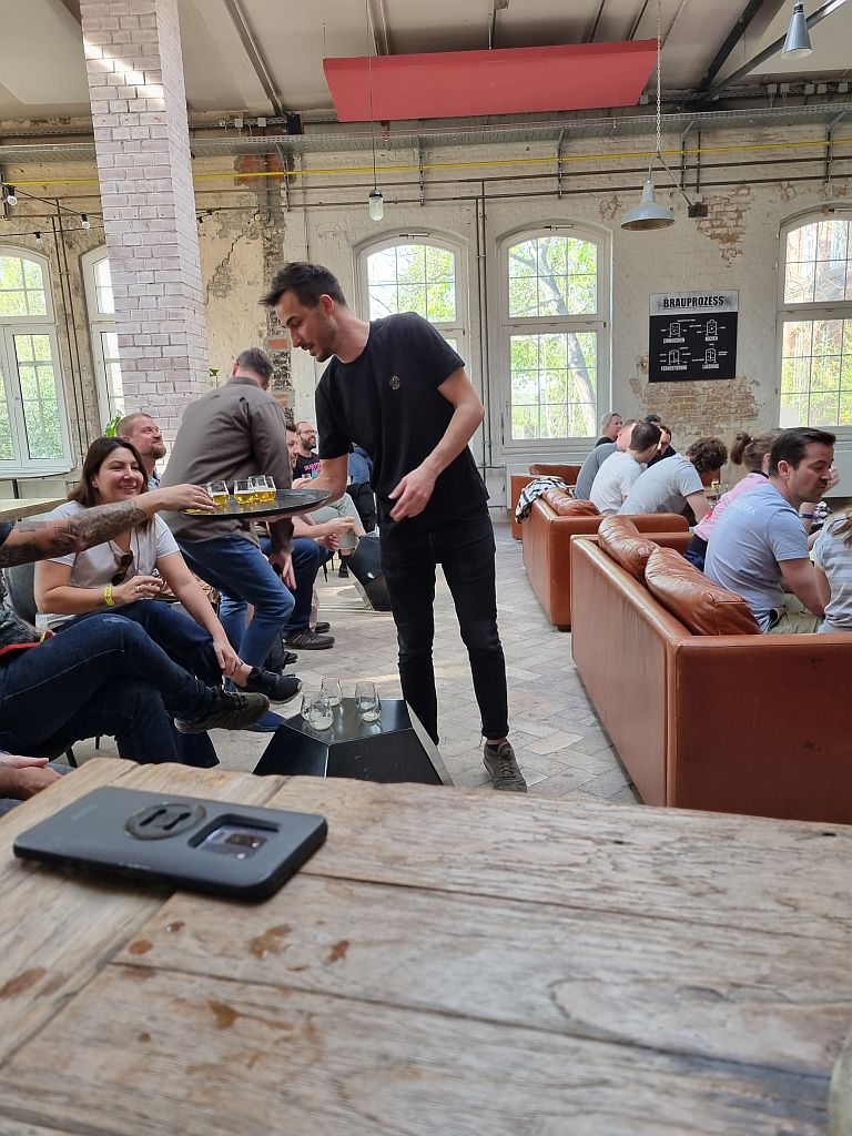 Am Eingang waren wir mehr oder weniger die ersten, die eintrafen. Und so konnten wir einen kleinen Schwatz mit den Angestellten vom Brewdog DogTap Berlin halten, denn außer ein paar Engländern (die zufälligerweise hier waren) und den uns eher bekannten Nasen wie Holger und Markus oder Holger und David kamen wirklich sehr wenige deutsche Shareholders.