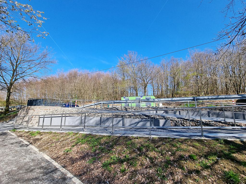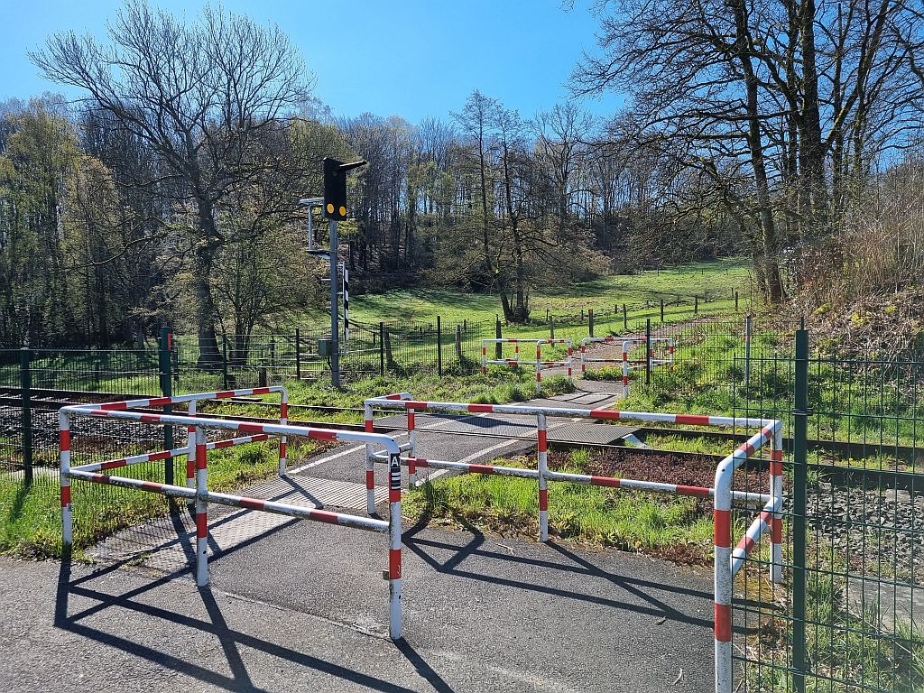 Über einen … irgendwie überdimensioniert gesicherten Bahnübergang ging es dann in Richtung der Brucher Talsperre.