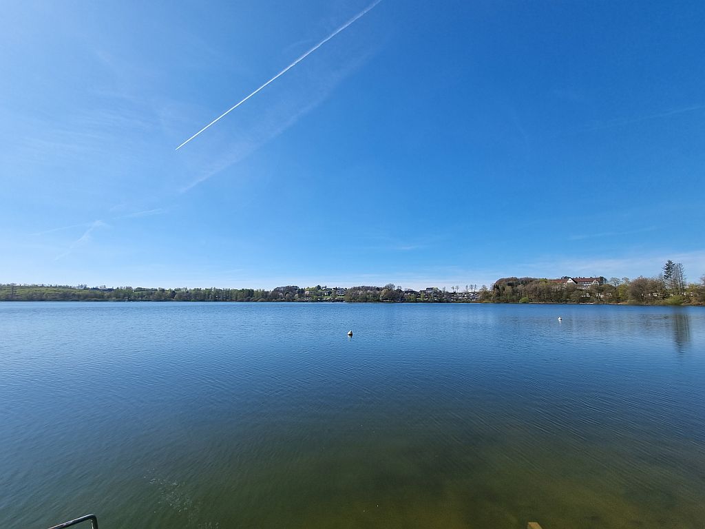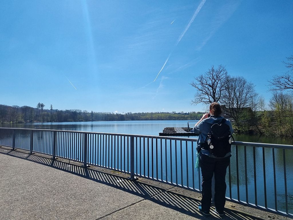 Wir machten uns dann auf den Weg, wobei wir schnell merkten, dass wir nicht gerade rund liefen und so lieber den eigentlich 13,5 Kilometer langen Weg abkürzen wollten. Eigentlich geht es noch weiter bis in das Dort Müllenbach, aber wir drehten dann lieber eine Runde um die Talsperre und wieder zurück.