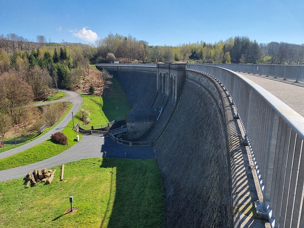 Die Staumauer wurde 1990 bis 1993 renoviert und ist der Ausgangspunkt für den 4 Kilometer langen Rundweg um die Talsperre. Die Jens noch von diversen Trainings-Sessions kennt.