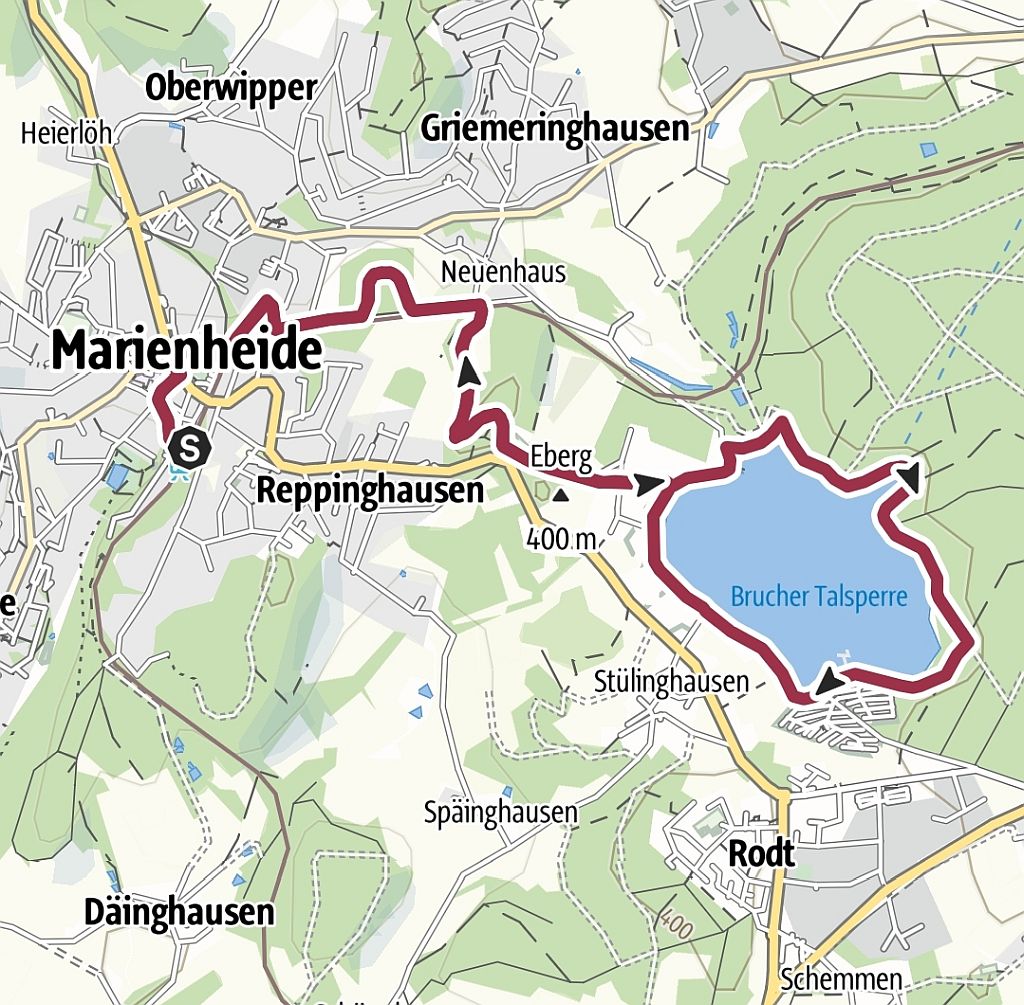 Kurz nach dem Start zweigte die ehemalige Wippertalbahn ab, die Marienheide nach Bergisch Born bei Wuppertal verbunden hat. 1995 wurde diese Strecke stillgelegt und ist heute als Geh- und Radweg in Benutzung.