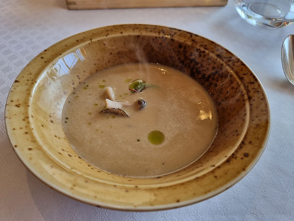Eher was für kältere Zeiten war die Hähnchen-Veloute mit Trüffel und Pilzen. Das war irgendwie erdiger und erinnerte eher an ein Herbst-Gericht.