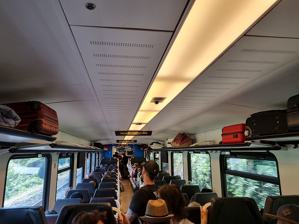 Der Zugbegleiter des kleinen Regionalbahn-Schuhkartons hat allerdings als Kind Tetris durchgespielt, denn nach einer kurzen „Gehen Sie bitte dahin, die Räder bitte dort rein“ Arie waren tatsächlich alle Personen in der kleinen Bahn verstaut. Beeindruckend!