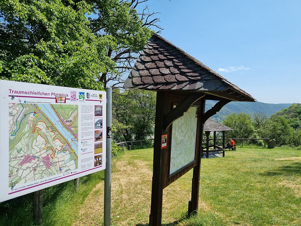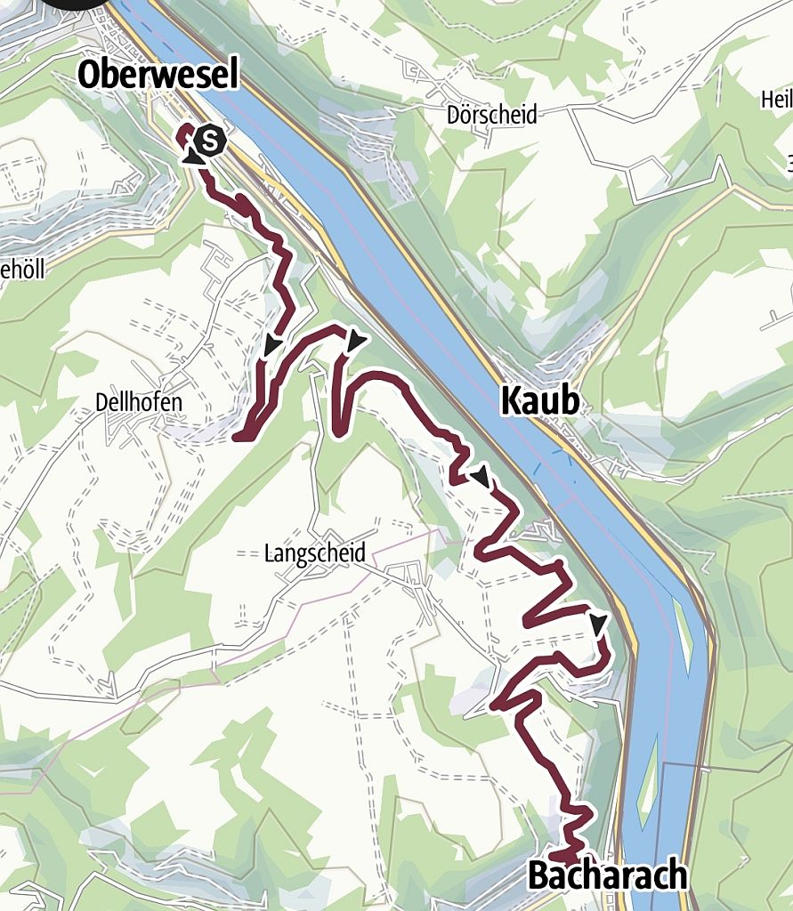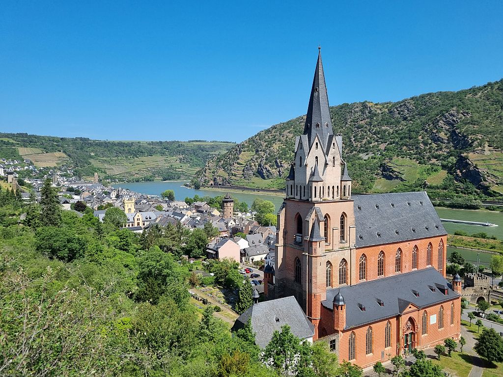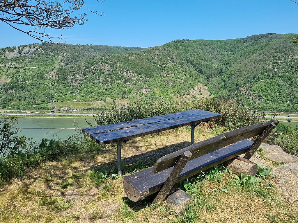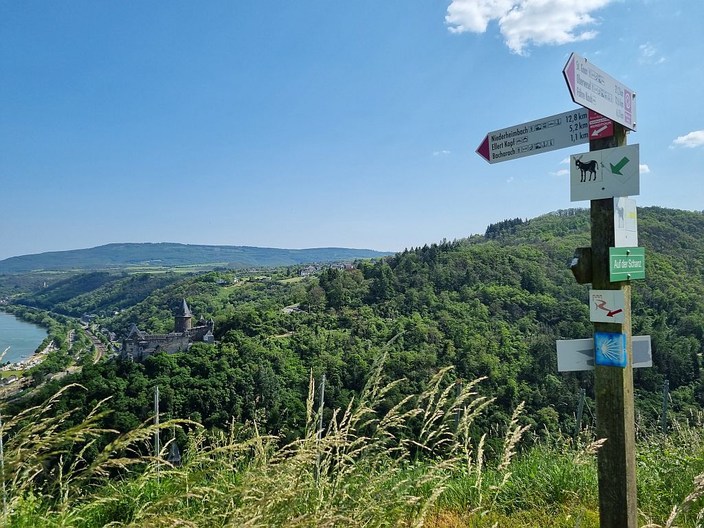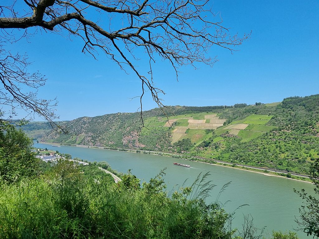 Und immer wieder unterbrochen von Ausblicken auf das wunderschöne Mittelrheintal wie hier gegenüber vom kleinen Ort Kaub.