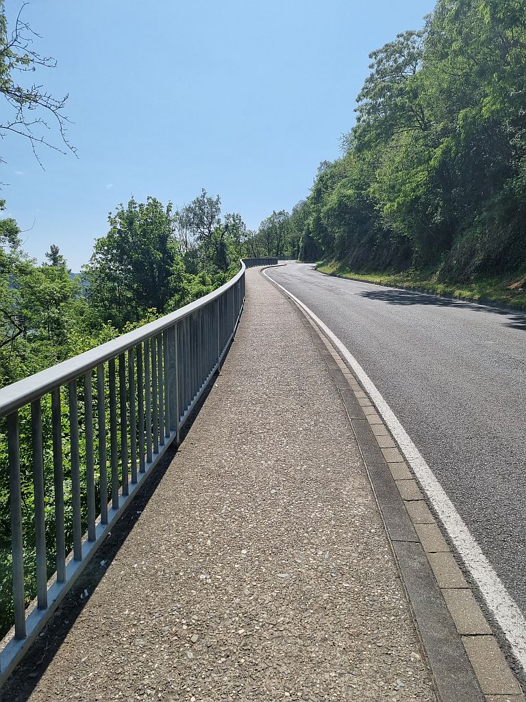 Besonderheit dieser Etappe: Von der Burg Schönburg (schöne Namensfindung übrigens: „Wie nennen wir diese schöne Burg?“ – „Schönburg?“ – „Gute Idee!“ – „Was?“) ging es wieder runter zur Ausgangsstraße. Die wir dann wieder hinauf gehen mussten.