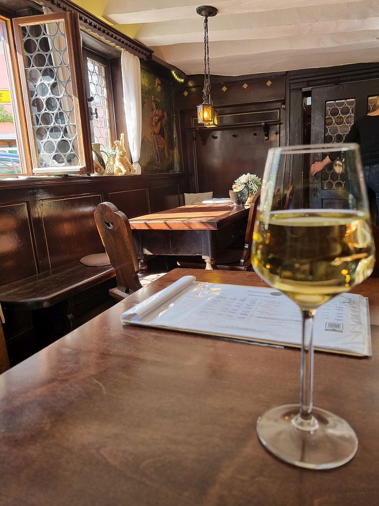 Diese Etappe wollten wir im Weinhaus „Kurpfälzische Münze“ beenden. Das Haus, in dem die Pfalzgräfen früher ihre Münzen haben prägen lassen, existiert seit 1142.
