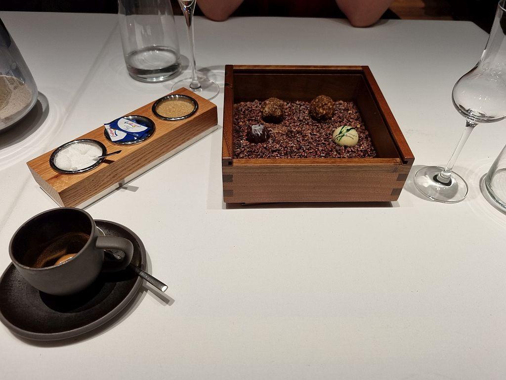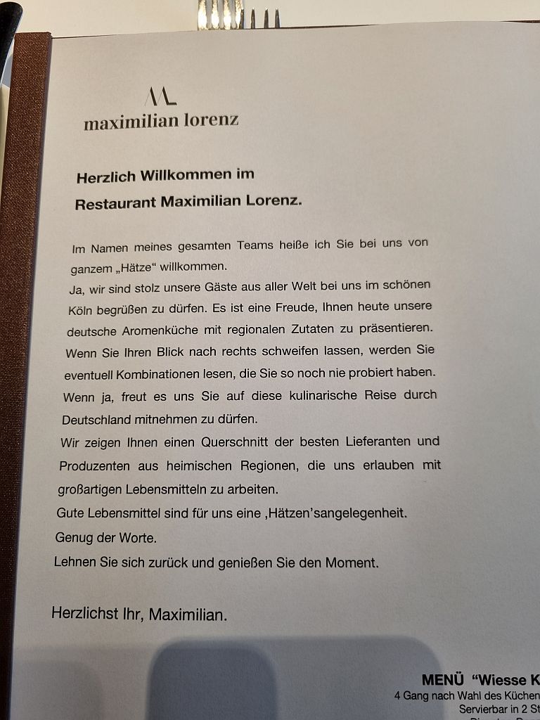 Und dann war dieses überaus leckere Essen auch schon vorbei. Mit dem Nachbartisch haben wir dann noch ein wenig gequatscht, mit dem Sommelier auch noch (dabei erfuhren wir unter anderem, dass das Maximilian Lorenz sehr viel ausbildet und auch Wert darauf legt, dass die Auszubildenden eine solide Ausbildung bekommen) und dann war es wirklich vorbei.