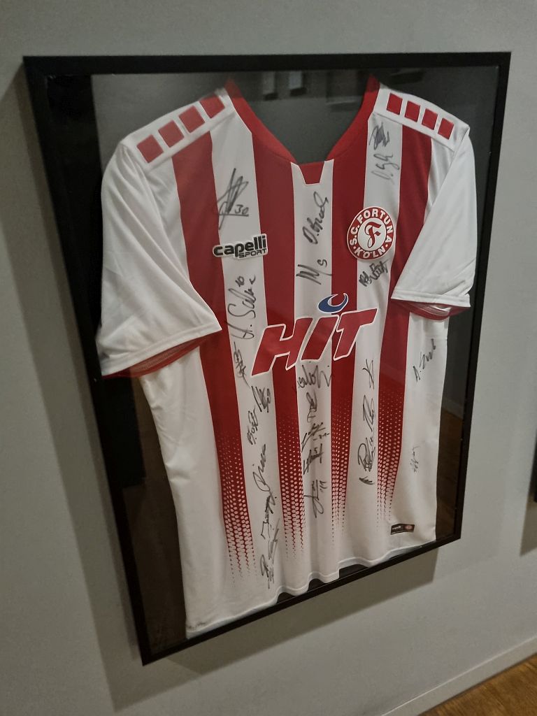 Apropos „Zeit“: Jetzt war eine für eine Bio-Pause. Und wie immer auf dem Weg wurden diverse Devotionalien ausgestellt. Maximilian Lorenz hat sein Berufsleben im Rheinland verbracht und das sieht man auch an den Trikots, die hier ausgestellt sind.