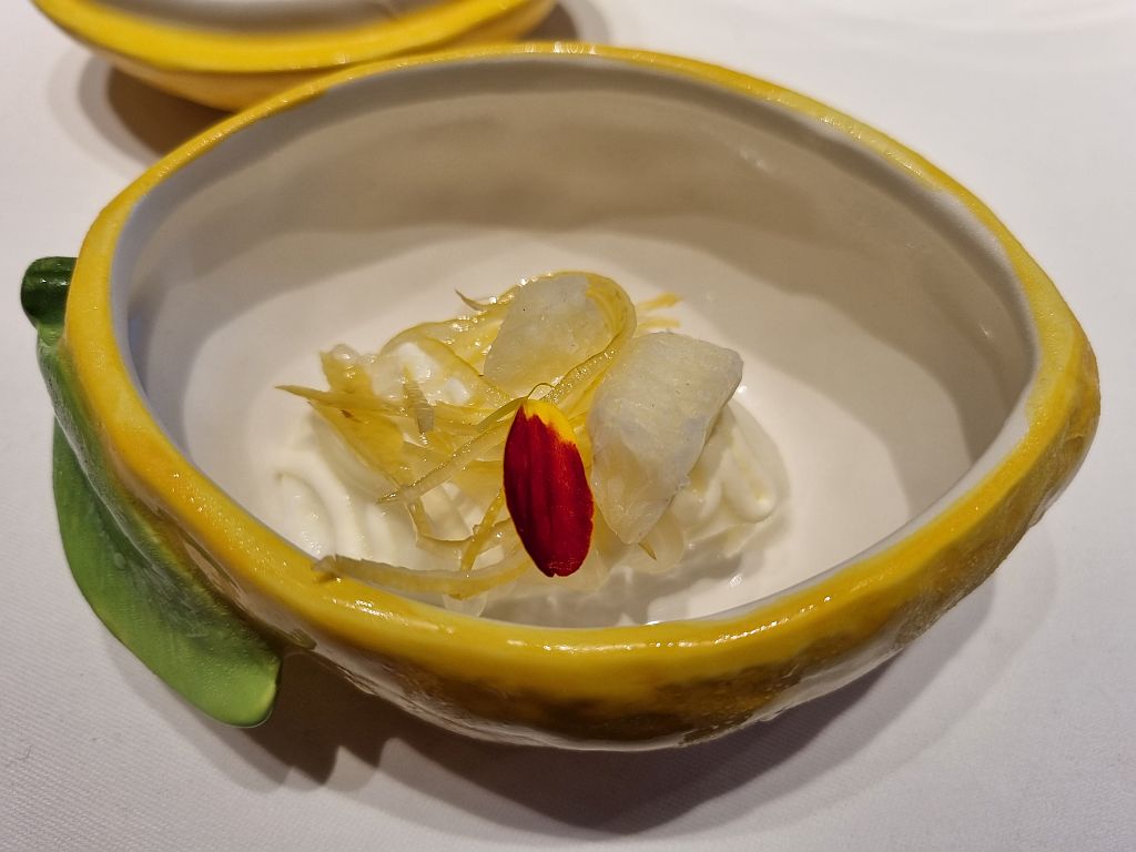 Pre-Dessert kennen wir ja. Ein Dessert vor dem Hauptgang noch nicht. Und wenn dieser dann in einer aus den China Restaurants der 80er Jahre noch bekannten „Kremik-Zitronen“ serviert wird, dann freute sich gerade Jens ein Loch in den Bauch. Denn mit seinen Eltern war das im China Restaurant in Gummersbach einer der zwei Nachtische, der auf den Karten auf dem Tisch beworben wurden und die er nie bestellen durfte.