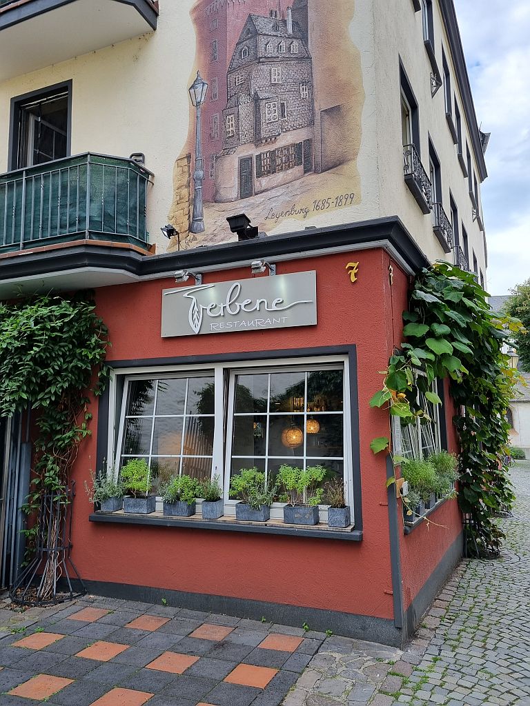 Nachdem wir Freitags uns eher mit Brauhaus-Essen und alkoholischen Getränken beim Konzert versorgt haben, wollten wir den Samstag dann lieber mit einem Gourmet-Essen beenden. Dazu haben wir vorab in einem neu besternten Restaurant in der Koblenzer Altstadt einen Tisch reserviert, im Verbene.