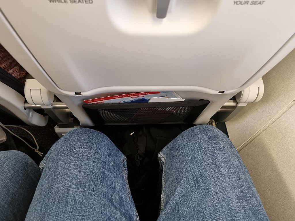 Vorteil hier ist unter anderem die 2-2 Bestuhlung, wodurch wir keinen neben uns sitzen hatten. Nachteil ist, dass es recht eng ist. Aber für die paar Minuten nach Amsterdam sollte es wohl reichen. Ehrlich gesagt bis 2 Stunden geht es so ohne Probleme.