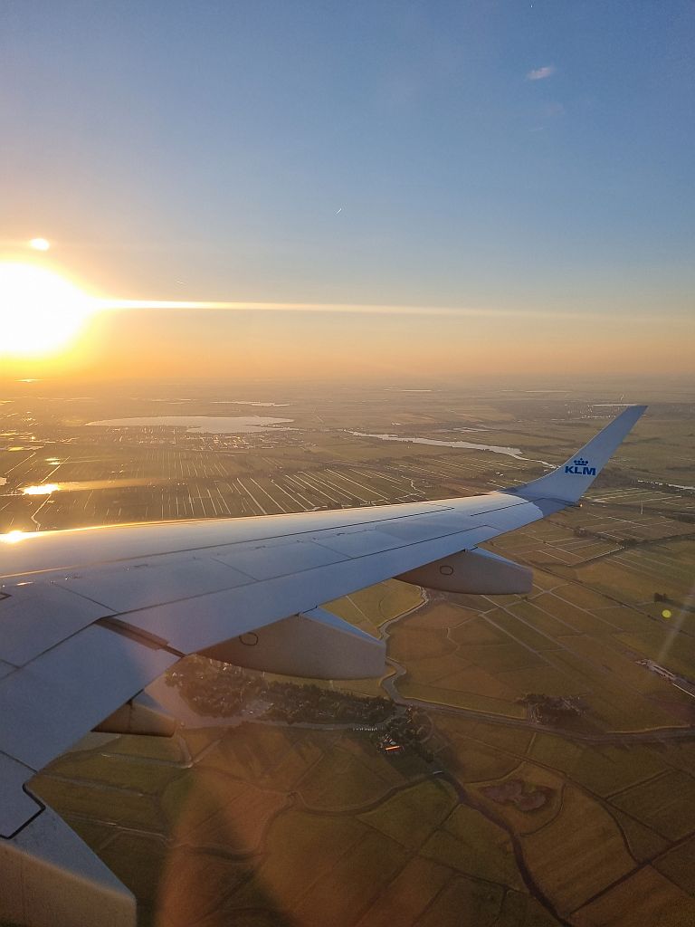 Also fliegen wir jetzt mit diesen niedlichen, kleinen, blauen Schuhkartons aus den Niederlanden, die unter dem Namen „KLM“ firmieren. Ein echtes „First“ für uns.
