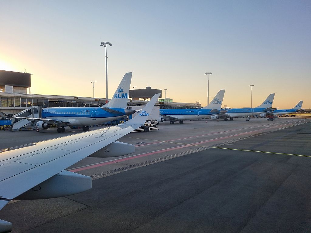 Und schon waren wir in Amsterdam Schiphol. Die Flugzeit von Düsseldorf hierhin schwankt zwischen 40 und 80 Minuten, je nachdem, ob der Flug direkt oder mit ein paar Warteschleifen versehen ist.