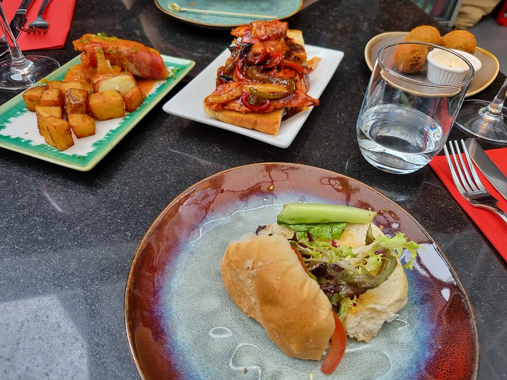 Und ein paar Tapas danach, inklusive hervorragender Haggis-Pralinen oben rechts.