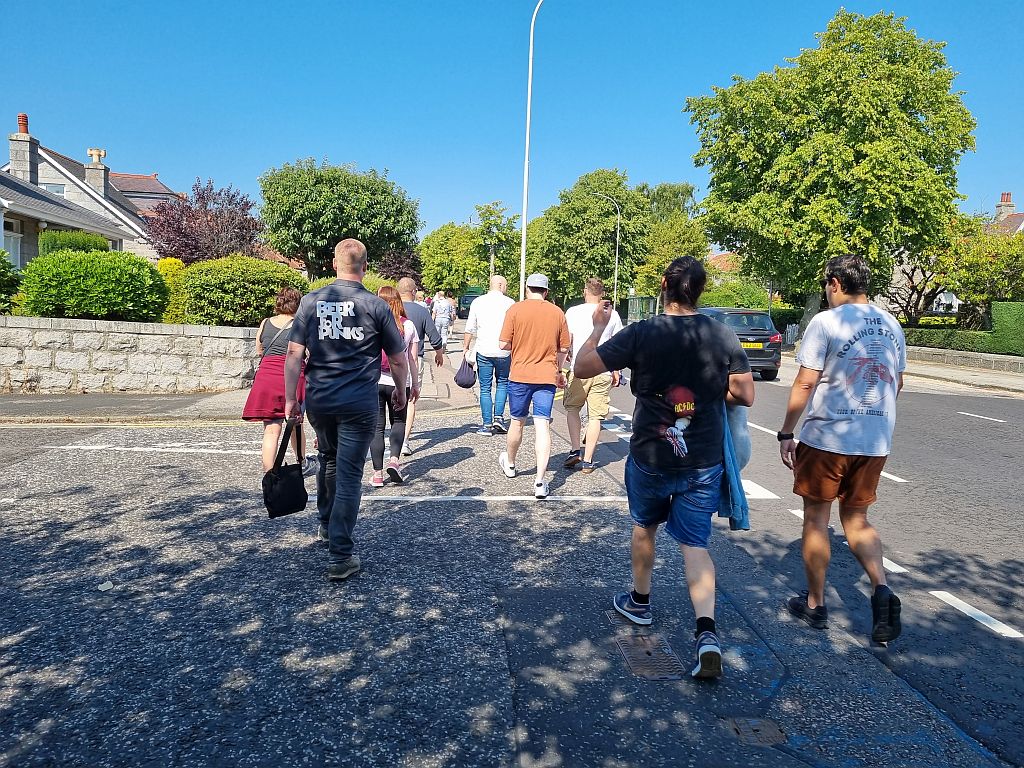 Eine Tradition bei der AGM ist der „AGM Walk“, ein gemeinsamer Spaziergang von Aktionären zum Gelände. Und diesen wollten wir dieses Jahr zum ersten Mal mitmachen. Also begaben wir uns zum zentral gelegenen Mercat Cross, wo schon einige Personen standen, die auch nach Brewdog-Aktionäre aussahen.